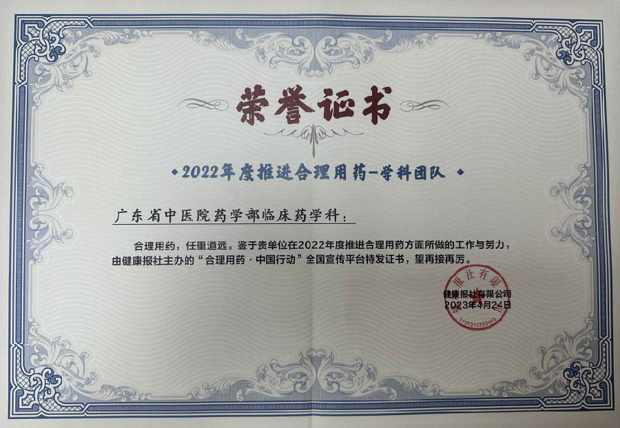 廣東省藥師團(tuán)隊(duì)在全國(guó)“合理用藥·中國(guó)行動(dòng)”2022年推進(jìn)合理用藥活動(dòng)中榮膺兩項(xiàng)榮譽(yù)