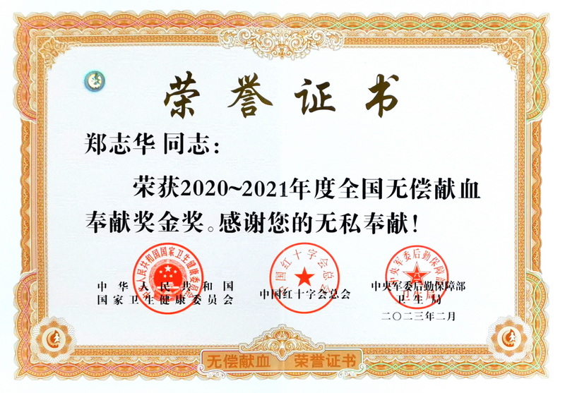 近日,廣東省藥學(xué)會副理事長兼秘書長、共產(chǎn)黨員鄭志華同志被國家衛(wèi)生健康委員會、中國紅十字會總會和中央軍委后勤保障部衛(wèi)生局評為2020-2021年度全國無償獻血奉獻獎金獎!