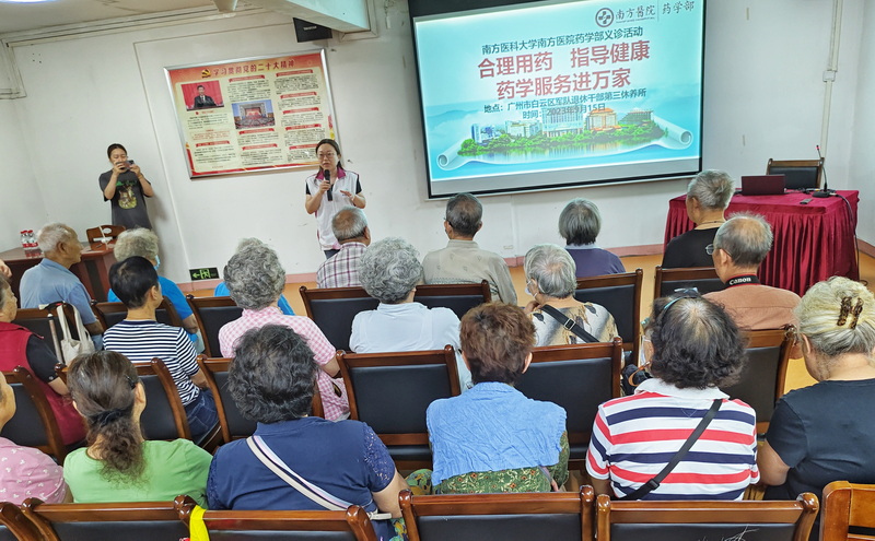 為深入開(kāi)展學(xué)習(xí)貫徹習(xí)近平新時(shí)代中國(guó)特色社會(huì)主義思想主題教育,持續(xù)推進(jìn)“我為群眾辦實(shí)事”常態(tài)化,9月15日上午,南方醫(yī)院藥學(xué)部黨總支組織黨員專家、深入所在社區(qū)白云區(qū)軍隊(duì)退休干部第三休養(yǎng)所,開(kāi)展“合理用藥·指導(dǎo)健康·藥學(xué)服務(wù)進(jìn)萬(wàn)家”主題活動(dòng)。藥學(xué)部李亦蕾主任、郭丹副主任、王春霞副主任帶領(lǐng)臨床藥學(xué)藥師、門(mén)診藥房青年文明號(hào)號(hào)手、靜脈藥物配置中心青年文明號(hào)號(hào)手一起參加?;顒?dòng)內(nèi)容豐富、實(shí)用,包括四個(gè)環(huán)節(jié):