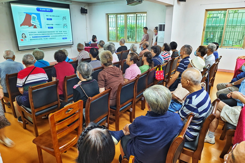 第一環(huán)節(jié):“科普小講課”,由賦能藥師以科普課堂形式,向與會(huì)老干部及家屬們講解冠心病的合理用藥和低血糖的防范科普知識(shí),老人們聽(tīng)得聚精會(huì)神。