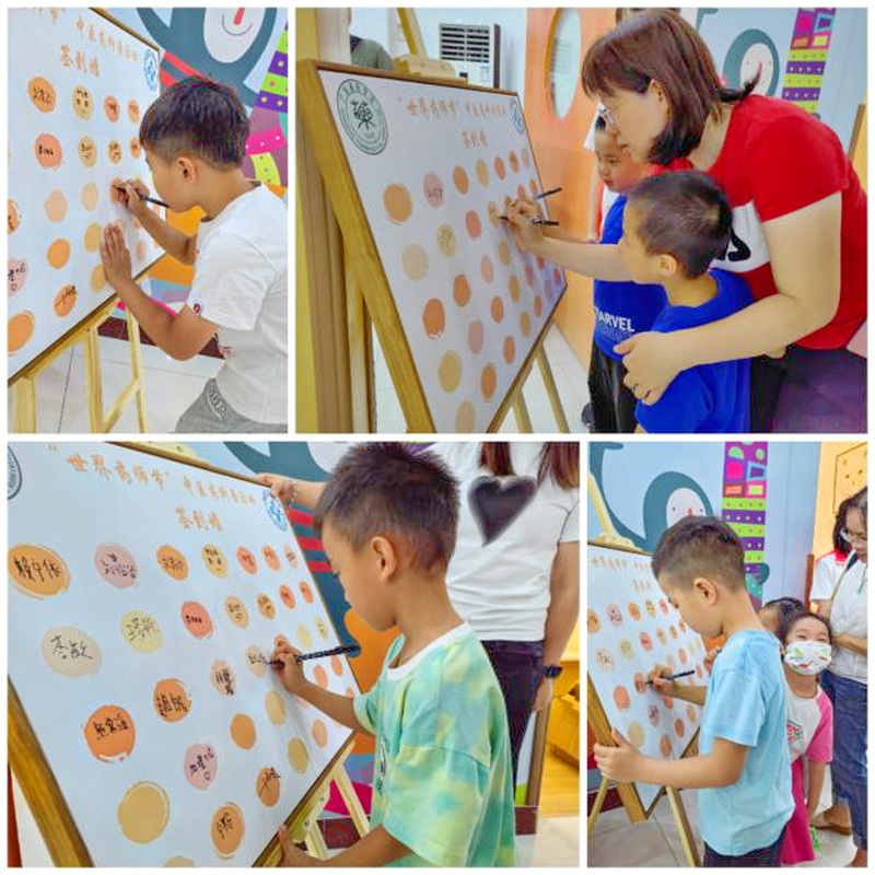 活動開始前,家長牽著孩子們的手來到簽到墻前,孩子們用稚嫩的小手一筆一畫,極其認(rèn)真地書寫下自己的名字,開啟中醫(yī)藥科普活動之旅。