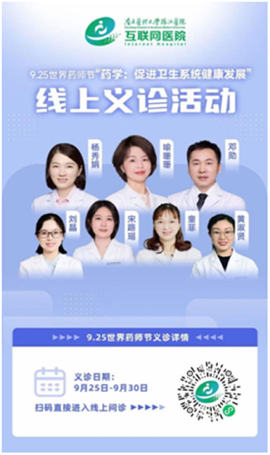 線上“互聯(lián)網(wǎng)+”的咨詢方式,不受時間地點限制,是對線下藥學門診的有效補充。9月25-30日,??婆R床藥師全時段在線,開展用藥咨詢,為諸多不便到院卻有用藥相關(guān)問題需求的患者提供互聯(lián)網(wǎng)+藥學咨詢服務(wù)。