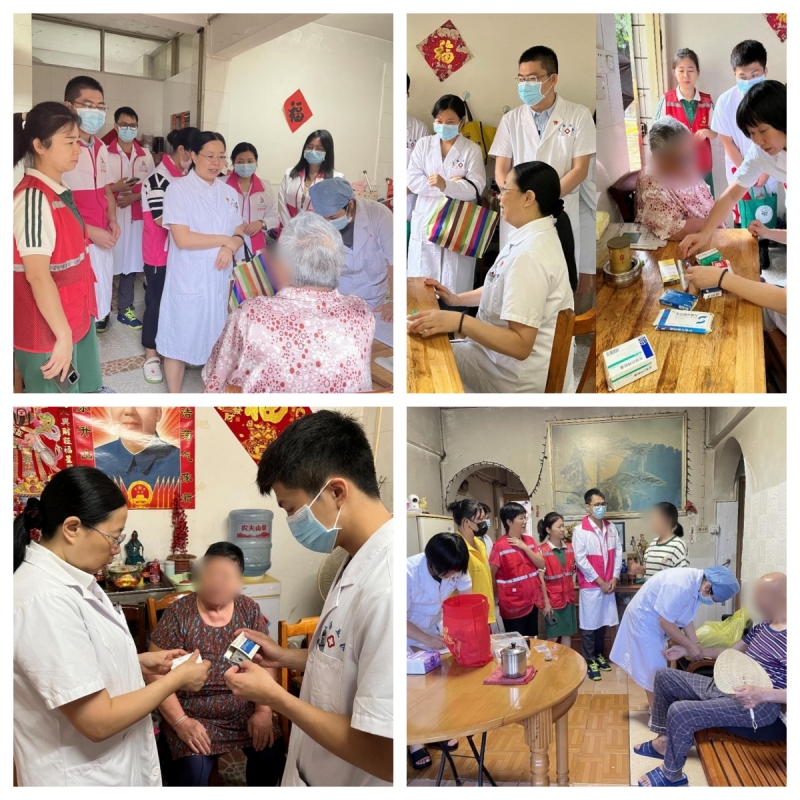 在港灣北社區(qū)有不少高齡老人,平均年齡高達80歲,他們因行動不便未能到醫(yī)院進行體檢,由于患有糖尿病、高血壓等慢性疾病,往往服用很多種的藥物,但是對于藥品卻不甚了解,甚至有重復用藥的風險。為此,在李詠梅主任的帶領下,PSM廣醫(yī)五院工作站組織了由社區(qū)醫(yī)生、家庭藥師及居委工作人員構成的志愿服務團隊來到社區(qū)高齡老人家中,詳細了解老人的病史及用藥情況,為老人進行了血壓、血糖、血常規(guī)、生化指標、尿常規(guī)、心電圖等項目檢查,并根據老人的慢病控制情況提供用藥指導,調整用藥方案,進行藥物重整。此外,家庭藥師們還幫助老人整理家庭藥箱,處理過期藥品,為其講解檢查藥品效期的方法并幫助老人處理過期藥品。