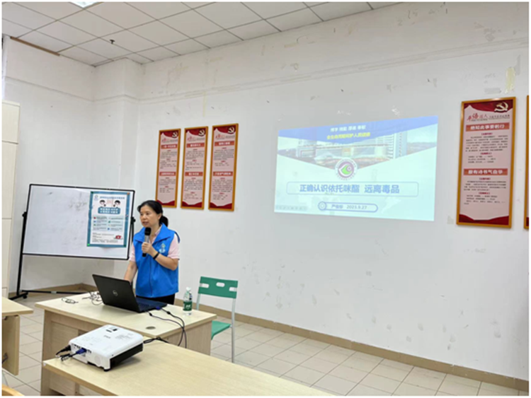 近幾年,青少年濫用依托咪酯的情況越來(lái)越多,嚴(yán)重影響個(gè)人健康及正常的家庭生活,對(duì)社會(huì)也會(huì)造成很多危害。主要是大多數(shù)人對(duì)濫用依托咪酯的成癮性、危害性并無(wú)了解,作為藥師,肩負(fù)著向民眾做科普宣傳的職責(zé)。9月27日,藥學(xué)部主任嚴(yán)俊珍赴陽(yáng)光天健城為居民進(jìn)行《正確認(rèn)識(shí)依托咪酯,遠(yuǎn)離毒品》科普宣講。2023年10月1日起,依托咪酯納入第二類(lèi)精神藥品目錄 ,這意味著,吸食“上頭電子煙”就是吸毒,銷(xiāo)售含有依托咪酯的電子煙將會(huì)構(gòu)成販賣(mài)毒品罪,刑事責(zé)任更重。民眾聽(tīng)了講座后紛紛表示收獲滿滿,一定要讓家人謹(jǐn)慎小心,遠(yuǎn)離各類(lèi)毒品。