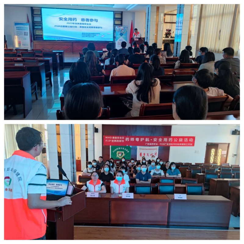 2023年9月19日,在茂名市婦幼保健院河?xùn)|院區(qū)門診大樓舉辦“2023 WHO患者安全日/FIP世界藥師日‘安全用藥 藥師護(hù)航 患者參與 全民健康’志愿公益活動(dòng)”,為患者安全用藥保駕護(hù)航。