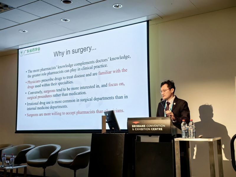 2023年第81屆世界藥學大會9月24-28日在澳大利亞布里斯班舉行。9月25日、第15個世界藥師節(jié)當天,由廣東省藥學會協(xié)助組織的第81屆世界藥學大會外科藥學論壇隆重召開,論壇主題為“外科藥學——一個在中國系統(tǒng)發(fā)展的新學科(Surgical pharmacy - A new specialty growing systematically in China)”。會議由國際藥學聯(lián)合會(FIP)陳征宇院士主持。廣東省藥學會副理事長兼秘書長鄭志華主任藥師做題為“Introduction to Surgical Pharmacy(外科藥學介紹)”的主題報告,中山大學孫逸仙紀念醫(yī)院何志超副主任藥師、華中科技大學同濟醫(yī)學院同濟醫(yī)院李偉杰主管藥師分別就“Surgical Pharmacy Practice(外科藥學實踐)”和“ Surgical Pharmacy Practice of Transplant Pharmacist(移植藥師的外科藥學實踐)”進行專題分享,三位講者還與來自世界各地的藥學同道進行了廣泛交流、互動。這是廣東省藥學會向第15個世界藥師節(jié)的最好獻禮。