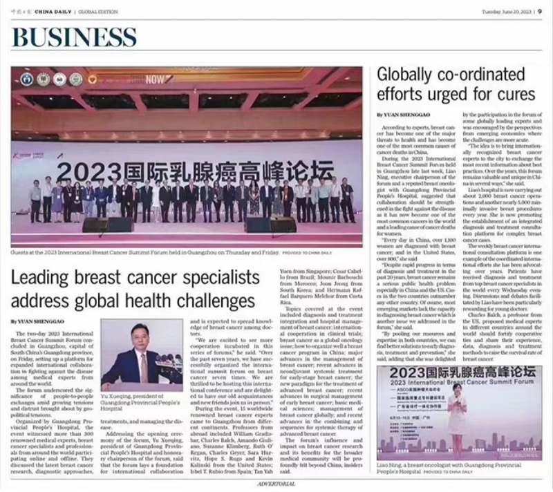 論壇內(nèi)容豐富,兼具廣度和深度,通過線上與線下相結(jié)合的方式,吸引了超過89萬人觀看,受到了媒體的廣泛關(guān)注,并獲得了《China Daily》的專題報道。報道稱,論壇的聚焦國際化,多學科交叉,強調(diào)醫(yī)學等各人文領(lǐng)域的交流顯得尤為重要,并指出本次論壇將給中國乃至世界的乳腺癌研究帶來巨大沖擊,并對更廣泛的醫(yī)學界帶來深遠的影響。