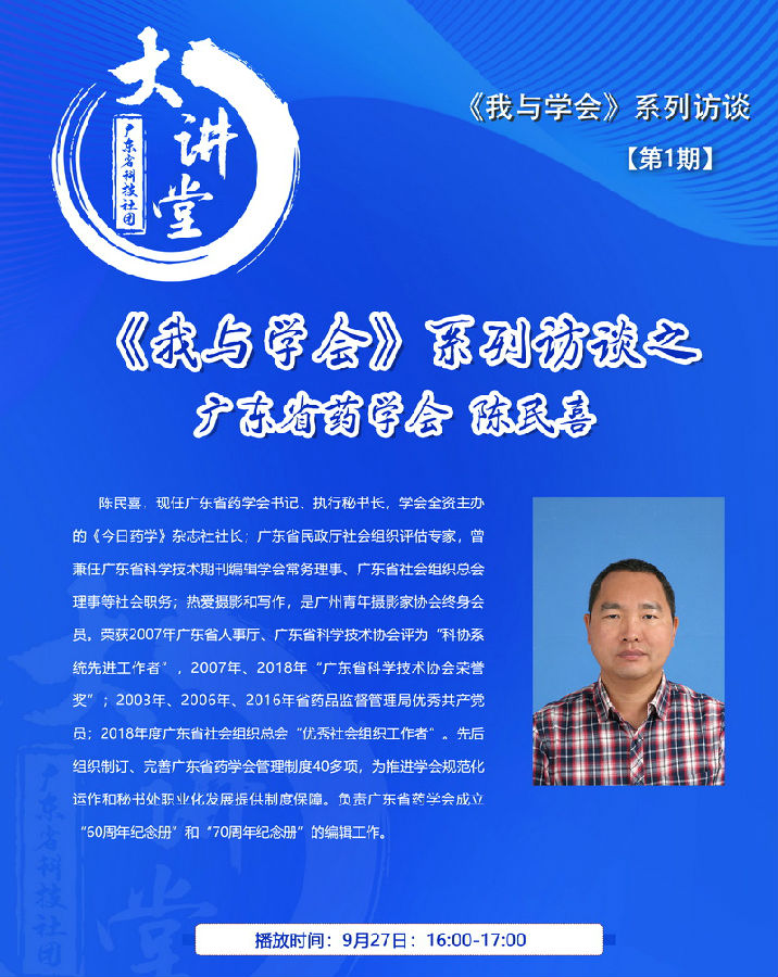 《我與學(xué)會(huì)》系列訪談節(jié)目是省科技社團(tuán)黨委2023年新推出的交流服務(wù)項(xiàng)目。旨在加強(qiáng)省科技社團(tuán)人才隊(duì)伍建設(shè),提升工作人員能力水平,搭建科技社團(tuán)分享和展示平臺(tái)。由省科技社團(tuán)黨委直屬工作隊(duì)教學(xué)組具體組織、錄制。首期由廣東省食品學(xué)會(huì)支部書(shū)記彭紅梅主持、廣東省藥學(xué)會(huì)黨支部書(shū)記陳民喜主講。