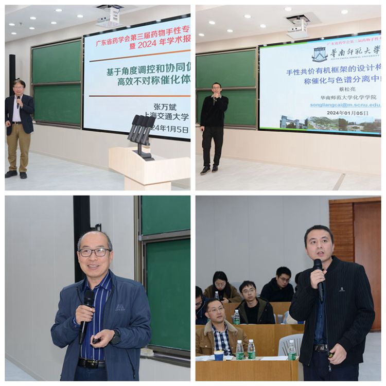 最后,會議舉行了藥物手性專委會2024年學(xué)術(shù)報告會,由新任常務(wù)副主任委員暨南大學(xué)陳國棟研究員主持。張萬斌、李向軍、華南師范大學(xué)蔡松亮教授、暨南大學(xué)王永恒研究員分別以不對稱催化體系構(gòu)建、手性共價有機(jī)框架構(gòu)筑、酶催化的立體化學(xué)調(diào)控機(jī)制、手性分子分離分析為主題進(jìn)行了精彩的報告,展示了在各自研究領(lǐng)域的最新研究成果,為大家?guī)硪粓鼍始姵实膶W(xué)術(shù)盛宴。