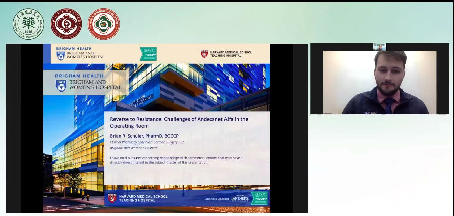 本次沙龍交流的主要內(nèi)容是來自Brigham and Women's Hospital 心臟外科首席專科臨床藥師 Brian Schuler 博士分享:逆轉(zhuǎn)抗藥性:手術(shù)室中 Andexanet Alfa 的挑戰(zhàn);來自Brigham and Women's Hospital麻醉和圍手術(shù)期藥學(xué)服務(wù)經(jīng)理 Sarah Culbreth 博士分享-圍手術(shù)期藥學(xué)服務(wù)與實踐研究以及中山大學(xué)附屬第六醫(yī)院高旻教授分享-加速康復(fù)外科圍術(shù)期藥學(xué)服務(wù)。