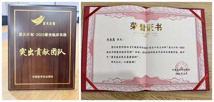劉春霞主任藥師組織選送的病例《柳暗花明又一村,伏立康唑個體化用藥監(jiān)護(hù)一例》榮獲中國醫(yī)學(xué)論壇報“最受基層醫(yī)生喜愛病例”“星火計劃·2023最佳臨床實踐突出貢獻(xiàn)團(tuán)隊”榮譽,為基層醫(yī)生提供了寶貴的臨床經(jīng)驗和用藥指導(dǎo),充分展示了藥學(xué)部在臨床藥學(xué)實踐中的成果和影響力。