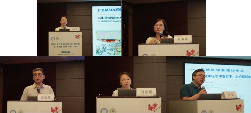 授課環(huán)節(jié)分別由廣東醫(yī)科大學(xué)附屬醫(yī)院江東波主任藥師、湛江中心人民醫(yī)院蔡靜月主任藥師主持。中山大學(xué)孫逸仙紀(jì)念醫(yī)院伍俊妍主任藥師、中山大學(xué)附屬第三醫(yī)院麥海燕副主任藥師、廣東省人民醫(yī)院汪斌超副主任醫(yī)師、江西省腫瘤醫(yī)院劉麗娟主任藥師、廣州市第一人民醫(yī)院劉敬研究員分別作了《ADC藥物治療進(jìn)展》《國家政策推動下的腫瘤診療模式轉(zhuǎn)型》《縣域肺癌臨床診療路徑(2023版)解讀》《從藥學(xué)視覺看肺癌靶向藥物的合理應(yīng)用》《DIP下醫(yī)保限定支付范圍用藥管理探討》的專題講座。專家們結(jié)合自身豐富的臨床經(jīng)驗(yàn)和高水平的學(xué)術(shù)見解,共同探討學(xué)科前沿,交流學(xué)術(shù)成果,呈現(xiàn)了一場精彩紛呈的學(xué)術(shù)盛宴。