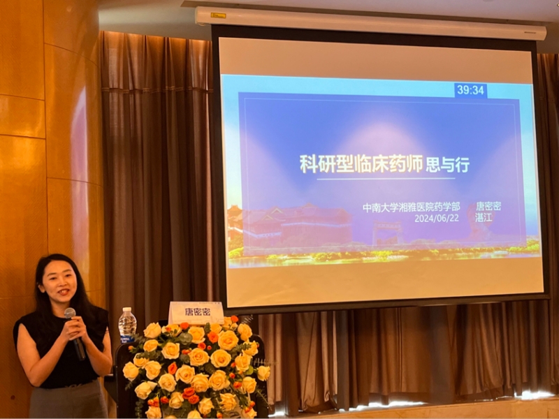 唐密密教授以《科研型臨床藥師思與行》為題作專題授課,以自身臨床藥學工作經(jīng)歷、科研實踐經(jīng)驗對如何發(fā)現(xiàn)并解決臨床問題、臨床常規(guī)工作如何助力研究型醫(yī)院建設以及探索建立常態(tài)化“研究型門診”、打造藥師引領(lǐng)“藥師+醫(yī)師+營養(yǎng)師+護士”MDT團隊等相關(guān)內(nèi)容展開了生動闡述,向大家分享自己從事藥學科研工作的各種心得體會,也強調(diào)了團隊合作的重要性,讓參會者對于從臨床藥師成為科研型臨床藥師多了一些深入思考。