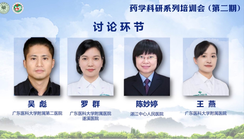 會議最后為討論環(huán)節(jié),參加討論的專家嘉賓有廣東醫(yī)科大學附屬第二醫(yī)院吳彪教授、廣東醫(yī)科大學附屬醫(yī)院遂溪醫(yī)院羅群教授、湛江中心人民醫(yī)院陳妙婷教授、廣東醫(yī)科大學附屬醫(yī)院王燕教授。各授課教授結(jié)合了實際工作,對醫(yī)院未來科研工作的發(fā)展提出的富有啟發(fā)性的建議,大家紛紛對此表示感謝。討論嘉賓們亦積極建言獻策,愿大家能將科研意識融入到日常的查房、課題設置當中,讓臨床工作與日常科研任務緊密結(jié)合,經(jīng)過團隊合作,不斷推動科研工作發(fā)展,努力開創(chuàng)粵西地區(qū)藥學科研工作新局面。