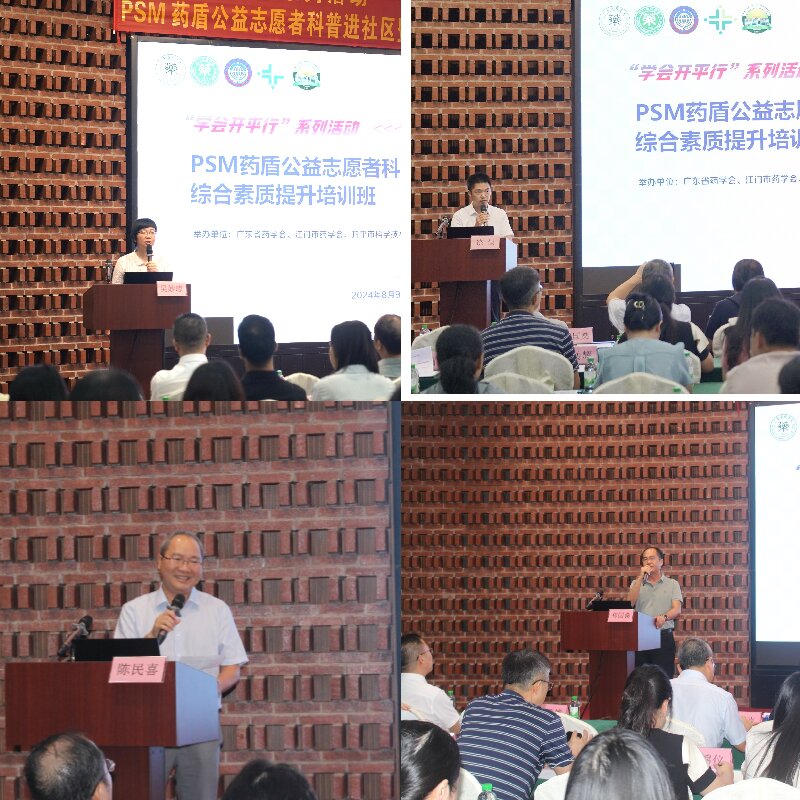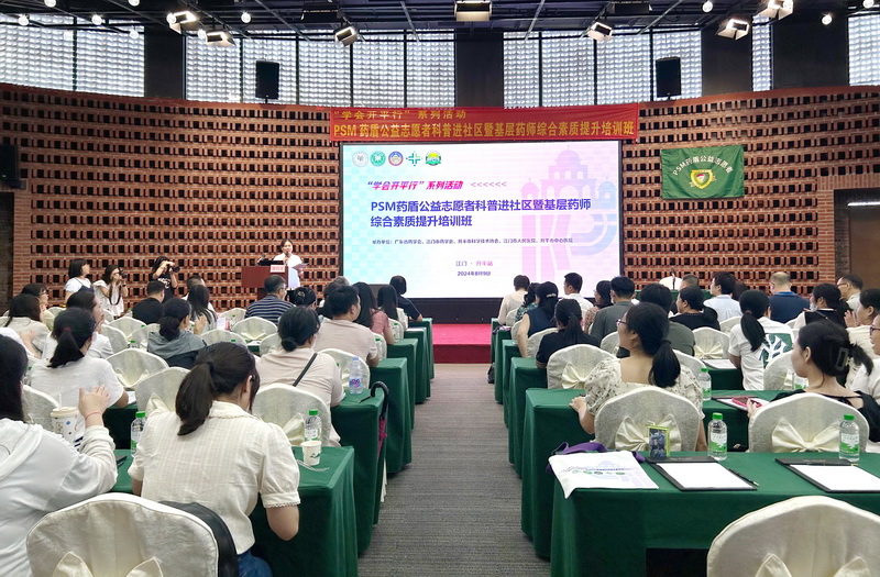為配合省科協(xié)“百千萬工程”縱向幫扶工作開展,同時進一步開展科技傳播創(chuàng)新工程、向公眾宣傳安全合理用藥知識,2024年8月9日,由廣東省藥學(xué)會、江門市藥學(xué)會、開平市科學(xué)技術(shù)協(xié)會、江門市人民醫(yī)院、開平市中心醫(yī)院在開平市塘口鎮(zhèn)聯(lián)合舉辦了“‘學(xué)會開平行’--PSM藥盾公益志愿者科普進社區(qū)暨基層藥師綜合素質(zhì)提升培訓(xùn)班(江門開平站)”。旨在通過活動開展,有效提升基層藥師科研創(chuàng)新和科普傳播技能及綜合服務(wù)水平,進一步將科普傳播和科研創(chuàng)新融入藥學(xué)服務(wù),加強醫(yī)院藥學(xué)部門的社會化服務(wù)功能,助力醫(yī)院藥學(xué)高質(zhì)量發(fā)展和“健康廣東”建設(shè)。活動邀請了省內(nèi)外多位醫(yī)藥領(lǐng)域?qū)<疑W臨授課,來自武漢、上海、廣州、江門、中山、珠海等醫(yī)療機構(gòu)100多人參加。