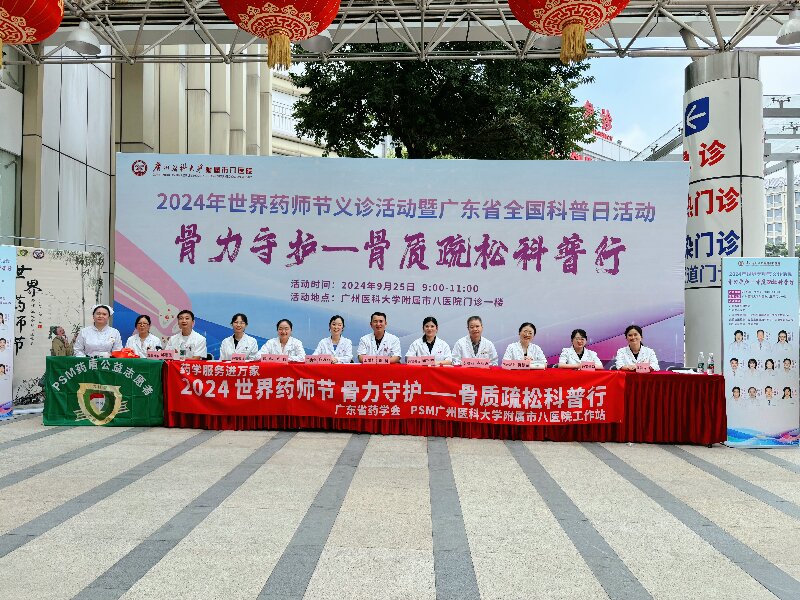 在藥師節(jié)當天上午,中山大學附屬第一醫(yī)院、廣州醫(yī)科大學附屬市八醫(yī)院、廣州市正骨醫(yī)院均在各自醫(yī)院門診大廳開展骨質(zhì)疏松科普主題的義診活動。