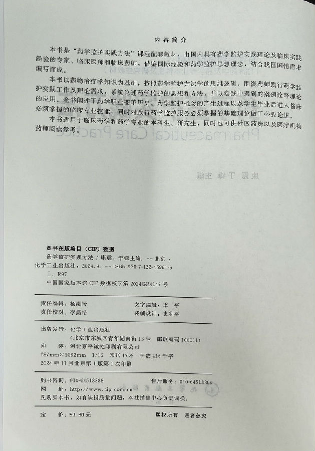 近日,《藥學(xué)監(jiān)護(hù)實(shí)踐方法》已正式由化學(xué)工業(yè)出版社出版。