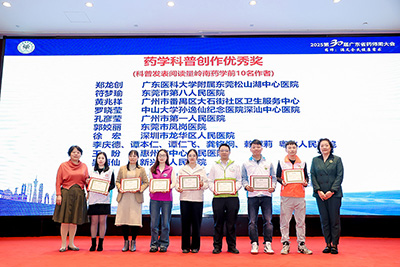 藥學科普創(chuàng)作優(yōu)秀獎(科普發(fā)表閱讀量嶺南藥學前10名作者):
