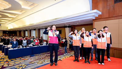 接著,會議進行PSM藥盾公益新工作站成立、授旗、全體志愿者宣誓及頒發(fā)證書的環(huán)節(jié)。首先,PSM藥盾公益廣東總站長吳新榮主任隆重宣布2個新工作站的成立,分別是PSM藥盾公益中山大學中山眼科中心工作站和PSM藥盾公益廣州市老年醫(yī)院工作站。隨后吳新榮主任和鄭志華副理事長為新成立工作站授旗并頒發(fā)證書,鄭副理事長帶領大家重溫志愿者誓詞,宣誓現(xiàn)場莊嚴肅穆,十分神圣。