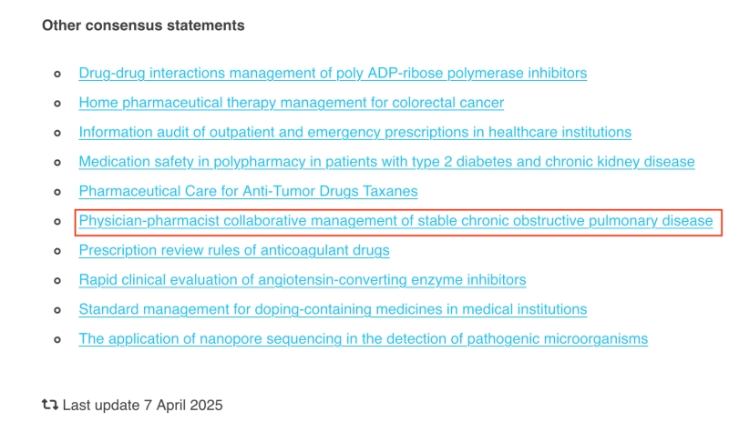全文詳細(xì)內(nèi)容請到FIP鏈接:https://www.fip.org/files/content/FIP_members_across_the_globe/FIP_in_China/Expert_Consensus_on_Physician-Pharmacist_Collaborative_Management_of_Stable_Chronic_Obstructive_Pulmonary_Disease.pdf
