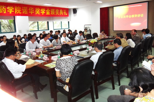 9月18日下午,“中山大學(xué)藥學(xué)院學(xué)生獎(jiǎng)學(xué)金——廣東省藥學(xué)會(huì)·諾華萌芽項(xiàng)目”在中山大學(xué)大學(xué)城校區(qū)頒獎(jiǎng)。中山大學(xué)藥學(xué)院臨床藥學(xué)方向的22位“誠(chéng)實(shí)守信、品學(xué)兼優(yōu)”的學(xué)子榮獲獎(jiǎng)勵(lì)。中山大學(xué)副校長(zhǎng)顏光美教授、中山大學(xué)藥學(xué)院院長(zhǎng)黃民教授、省藥學(xué)會(huì)副秘書長(zhǎng)鄭志華、諾華制藥公司全球商務(wù)經(jīng)理斯蒂芬,南區(qū)經(jīng)理吳明祥等領(lǐng)導(dǎo)出席了頒獎(jiǎng)會(huì)并做講話;中山大學(xué)所屬附院及省人民醫(yī)院藥學(xué)部主任,獲獎(jiǎng)學(xué)生共40多人參加了頒獎(jiǎng)典禮。