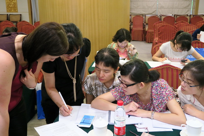 本次學習班以理論授課與病例討論相結合的形式開展,全程英文授課,由美國伊利諾伊大學芝加哥分校Alan Lau教授、Sandra Cuellar副教授、Erika Hellenbart藥師主講,中山大學附屬第一醫(yī)院吳海燕藥師負責疑難章節(jié)翻譯串講。講題包括:美國臨床藥師實踐概況、藥師在腫瘤患者管理中的角色、口服抗凝劑的概述和臨床考量、化療引起的惡心嘔吐的管理進展、酪氨酸激酶抑制劑皮膚毒性的不良反應監(jiān)護、高血壓指南更新、美國腫瘤學臨床藥師的培訓等。病例討論包括:腫瘤病人的管理案例、抗凝治療病例、化療引起的惡心嘔吐病例、高血壓病例等。AlanLau教授長期從事臨床藥學管理與教學工作,在為學員傳授理論知識的同時,也將自己多年來對臨床藥學工作的理解分享給大家,特別對目前中國臨床藥學學科建設給出了鼓勵性話語“Is grass always greener in the United States for clinical pharmacy?Grass is greener where you water it”;Sandra Cuellar副教授專業(yè)知識功底扎實,語言風趣幽默,善于引導式教學,帶動學員積極參與討論;Erika Hellenbart藥師循循善誘、文思敏捷,特別擅長病例討論教學。