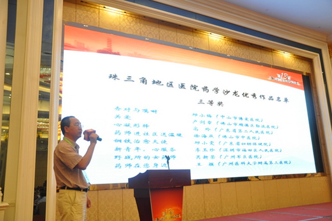 為豐富本屆沙龍活動內(nèi)容,發(fā)現(xiàn)、展示藥學工作以及藥師們的動人事跡和感人瞬間,充實業(yè)余生活,提高藥師攝影及審美水平,本屆沙龍還同時舉辦了“藥師的故事”主題攝影比賽,共征集作品53幅,評選出一等獎2名,二等獎5名,三等獎10名,由廣東省藥學會陳民喜副秘書長主持攝影賽頒獎,并邀請了鄭志華秘書長、楊艷副總經(jīng)理和江蘇新晨醫(yī)藥有限公司高峰總監(jiān)分別為一、二、三等獎獲獎作者頒發(fā)證書。