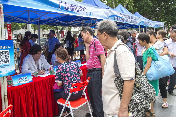 廣東省藥學(xué)會承辦了本次活動的專家健康義診項目,專門邀請廣東省人民醫(yī)院杜耀民主任醫(yī)師、廣州醫(yī)科大學(xué)附屬第一醫(yī)院葉珊慧主任醫(yī)師進(jìn)行現(xiàn)場專家義診。兩位專家分別為內(nèi)科和風(fēng)濕科全科醫(yī)師,專業(yè)知識面廣,尤其對老年病、多發(fā)病、常見病、疑難病,有著豐富的臨床經(jīng)驗。義診展臺前,常常被圍得水泄不通,兩位醫(yī)生對所有前來問診市民,都進(jìn)行耐心細(xì)致的診斷或提出治療建議,并利用一切機(jī)會,向他們宣傳安全用藥、合理用藥科普知識。比如:不要濫用抗菌藥物、不要亂用保健品和滋補(bǔ)藥物、不隨便輸液、管理好家庭藥箱;要充分認(rèn)識到:藥品是一種特殊商品,具有兩重性,既可治病,也可致病甚至要命;使用藥物、尤其是處方藥前,一定要咨詢醫(yī)師和藥師。