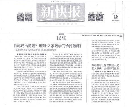 《新快報(bào)》:怕吃藥出問題?可到12家藥學(xué)門診找藥師