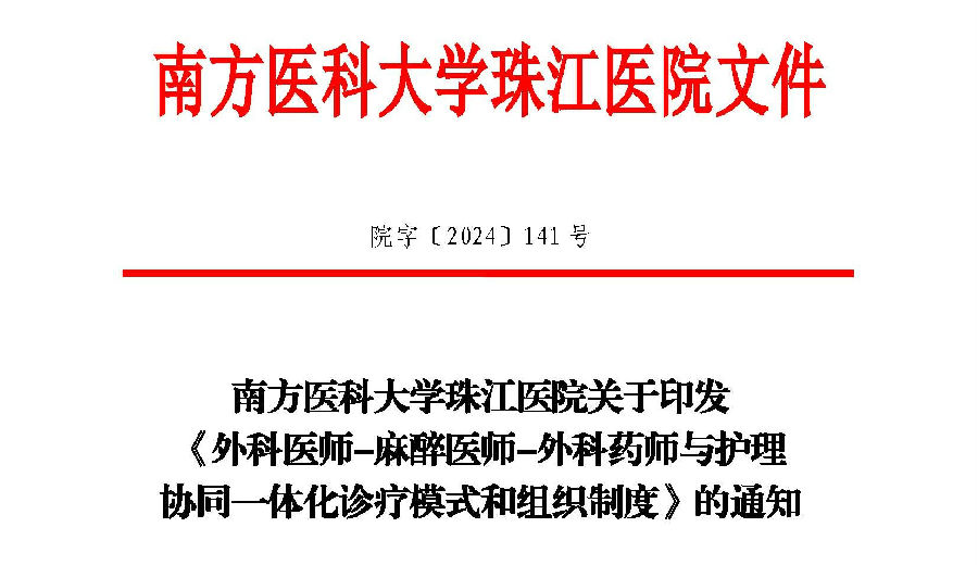 南方醫(yī)科大學(xué)珠江醫(yī)院構(gòu)建首個(gè)醫(yī)療機(jī)構(gòu)“外科醫(yī)師-麻醉醫(yī)師-外科藥師與護(hù)理協(xié)同一體化診療模式”