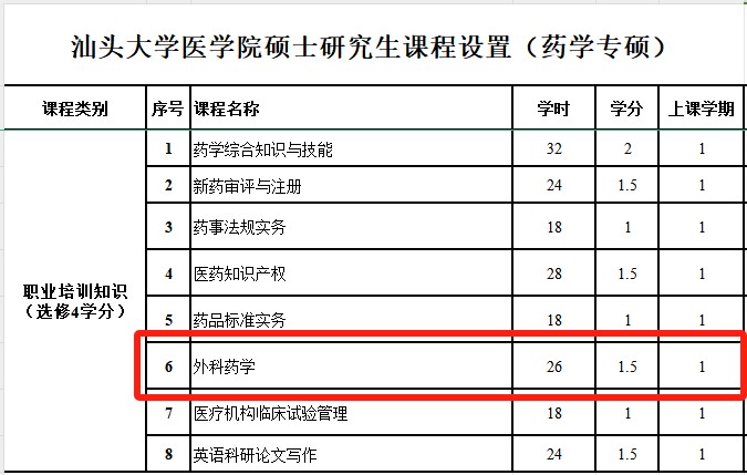 外科藥學(xué)首次被納入汕頭大學(xué)醫(yī)學(xué)院藥學(xué)專(zhuān)碩研究生教育課程