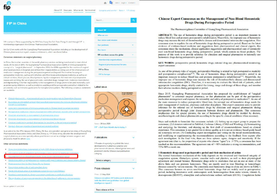 南方醫(yī)院李亦蕾主任牽頭的《圍手術(shù)期非血液制品止血藥物應(yīng)用管理專家共識(廣東)》在國際藥學(xué)聯(lián)合會(FI