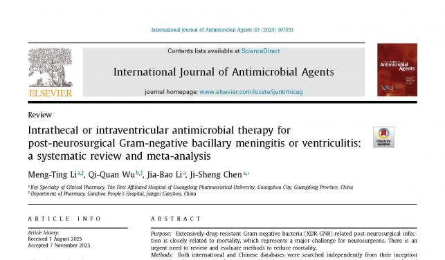 近日,廣東藥科大學附屬第一醫(yī)院藥學部陳吉生教授團隊在國際權(quán)威傳染病學雜志——《國際抗菌藥物雜志》(International Journal of Antimicrobial Agents,IF 10.8,JCR Q1)發(fā)表外科藥學論文——“神經(jīng)外科術(shù)后革蘭氏陰性細菌性腦膜炎或腦室炎的鞘內(nèi)或腦室內(nèi)抗菌治療:一項系統(tǒng)...發(fā)布時間:2024-01-16 17:21:50 | 瀏覽:1615 -