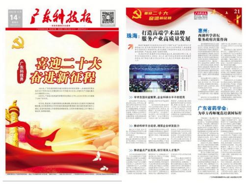 2022年10月14日,在舉世矚目的中國(guó)共產(chǎn)黨第二十次全國(guó)代表大會(huì)召開前夕,《廣東科技報(bào)》以“喜迎二十大奮進(jìn)新征程”為題,出版了一期特刊,全面、綜合報(bào)道了我省近年來在黨建、科技、經(jīng)濟(jì)、創(chuàng)新、學(xué)術(shù)、社會(huì)治理等各方面取得的成果,本會(huì)“審方培訓(xùn)”項(xiàng)目榮譽(yù)入選。近年來,我省深入實(shí)施創(chuàng)新驅(qū)動(dòng)發(fā)展戰(zhàn)略,把科技自立自強(qiáng)作為發(fā)展的...發(fā)布時(shí)間:2022-10-18 11:36:16 | 瀏覽:2020 -