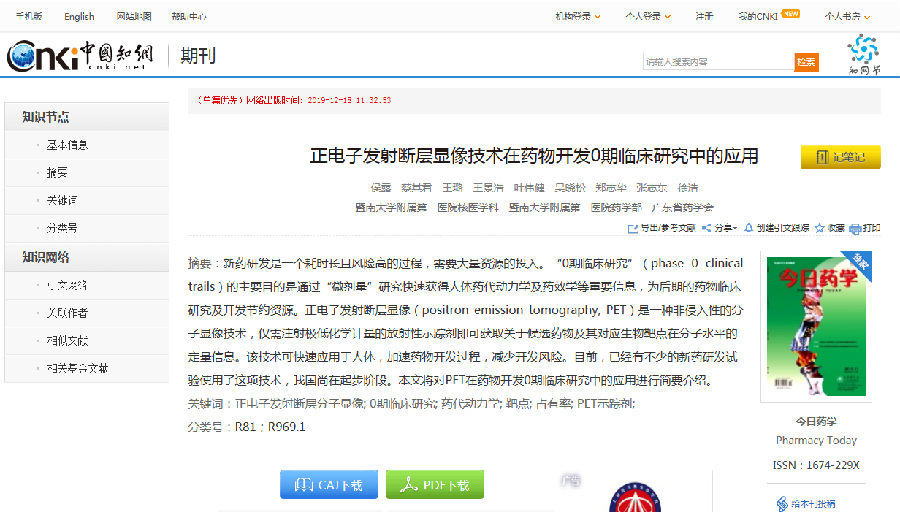 暨南大學附屬第一醫(yī)院聯(lián)合廣東省藥學會在國內(nèi)首次正式提出正電子發(fā)射斷層顯像技術運用于藥物開發(fā)0期臨床研