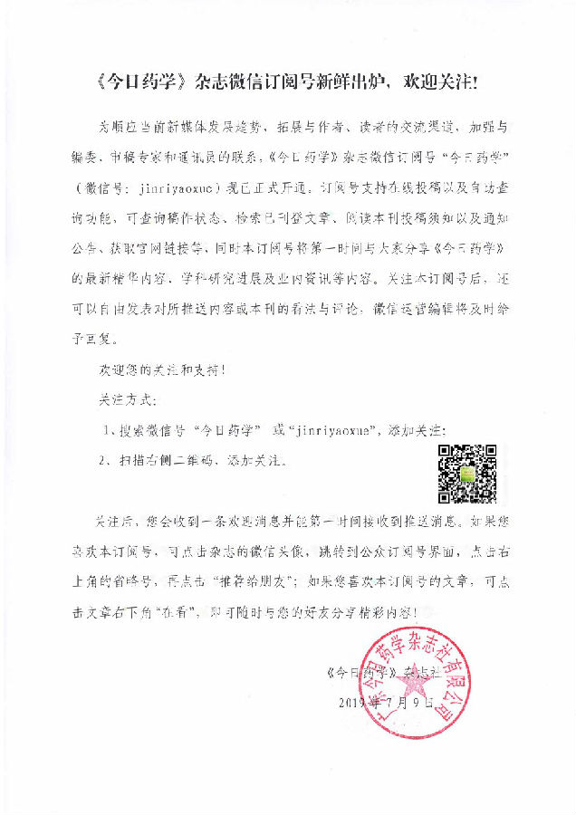 所屬類型:今日藥學(xué) 丨 發(fā)布時(shí)間:2019-08-20 14:08:58 丨 閱讀次數(shù):1813