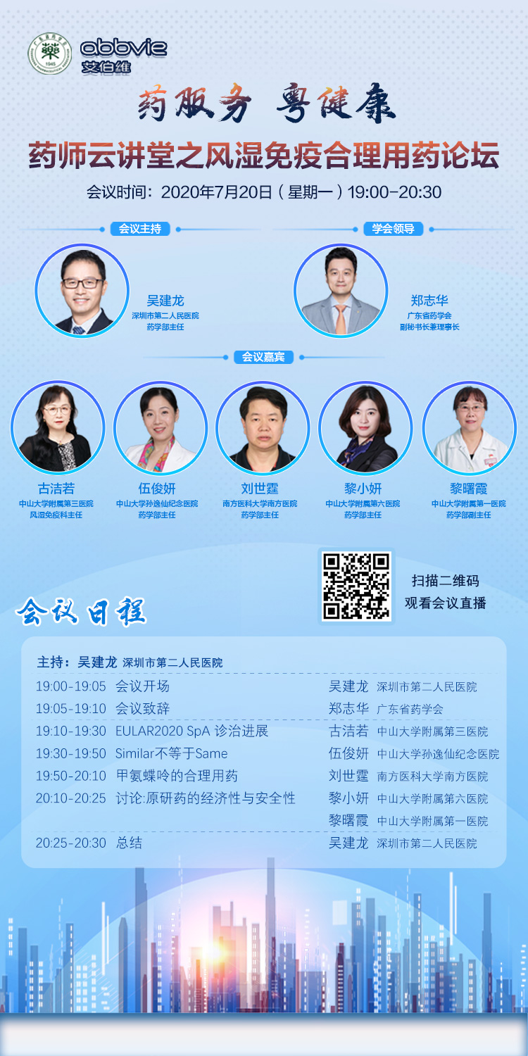 “藥服務(wù)、粵健康”線上項(xiàng)目藥師云講堂之風(fēng)濕免疫合理用藥論壇