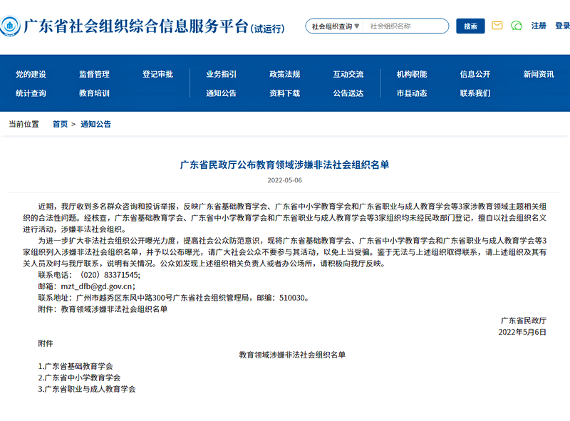 廣東省民政廳公布教育領(lǐng)域涉嫌非法社會組織名單