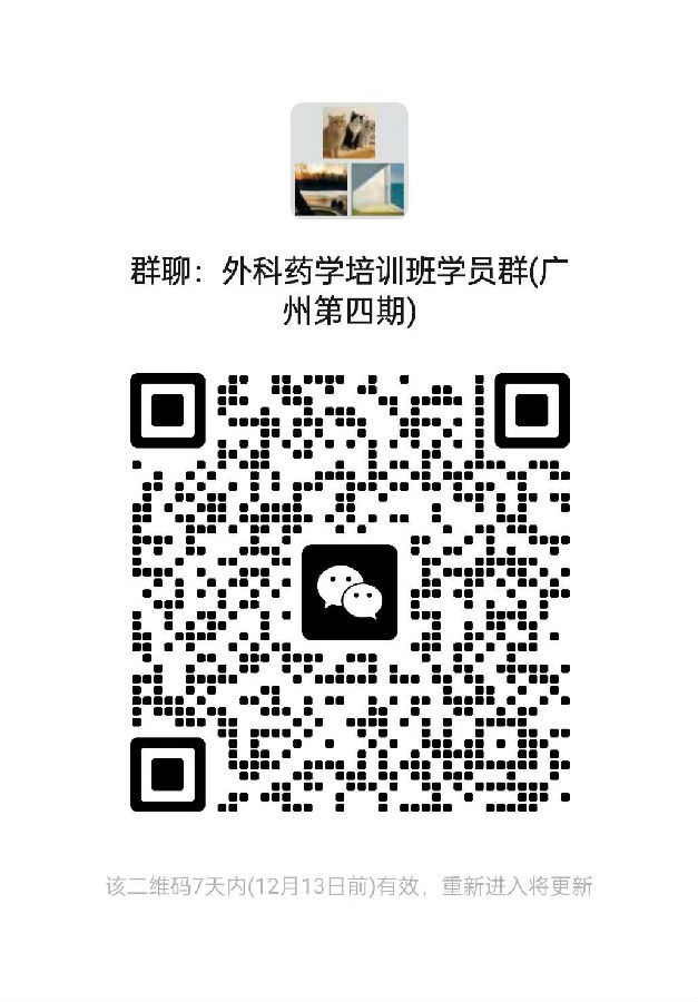 外科藥學培訓班(廣州第四期)學員錄取及相關事宜通知