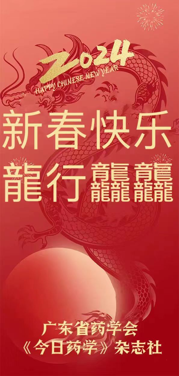 值此2024年新春佳節(jié)來(lái)臨之際,廣東省藥學(xué)會(huì)、《今日藥學(xué)》雜志社全體工作人員祝全體理事、全體會(huì)員、全省藥學(xué)工作者新春大吉、闔家幸福、龍行龘龘!