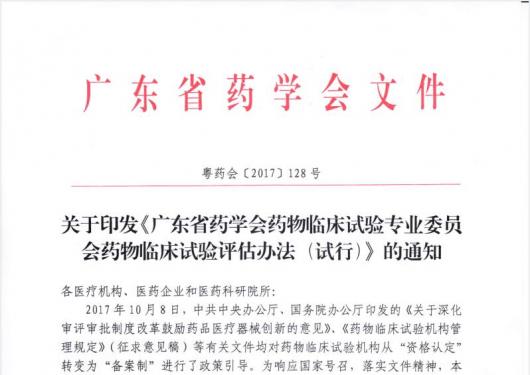 關(guān)于印發(fā)《廣東省藥學(xué)會藥物臨床試驗專業(yè)委員會藥物臨床試驗評估辦法(試行)》的通知