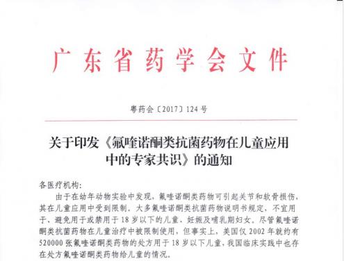關(guān)于印發(fā)《氟喹諾酮類抗菌藥物在兒童應(yīng)用中的專家共識(shí)》的通知