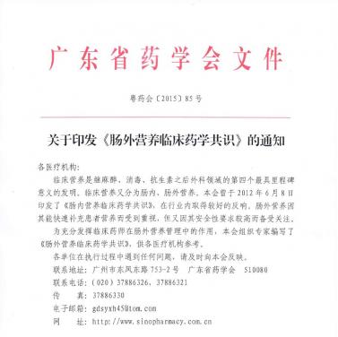 各醫(yī)療機(jī)構(gòu):臨床營養(yǎng)是繼麻醉、消毒、抗生素之后外科領(lǐng)域的第四個(gè)最具里程碑意義的發(fā)明。臨床營養(yǎng)又分為腸內(nèi)、腸外營養(yǎng)。本會(huì)曾于2012年6月8日印發(fā)了《腸內(nèi)營養(yǎng)臨床藥學(xué)共識》,在行業(yè)內(nèi)取得較好的反響。腸外營養(yǎng)因其能快速補(bǔ)充患者營養(yǎng)而受到重視,但又因其安全性要求較高而備受關(guān)注。為充分發(fā)揮臨床藥師在腸外營養(yǎng)管理中的作用,本...發(fā)布時(shí)間:2015-12-30 16:20:15 | 瀏覽:2219 -