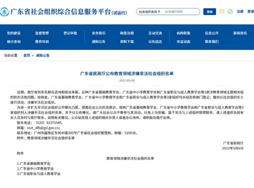 廣東省民政廳公布教育領(lǐng)域涉嫌非法社會(huì)組織名單