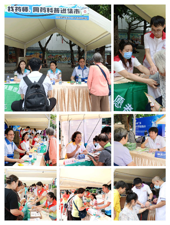 9月28日,臺(tái)風(fēng)影響基本消退,總站同步開(kāi)啟三場(chǎng)重點(diǎn)集市,分別在越秀區(qū)城隍廟廣場(chǎng)、海珠區(qū)燕匯廣場(chǎng)、海珠區(qū)萬(wàn)勝?gòu)V場(chǎng),覆蓋不同區(qū)域居民,實(shí)現(xiàn)“一場(chǎng)一特色,場(chǎng)場(chǎng)有亮點(diǎn)”。廣東省藥學(xué)會(huì)鄭志華主任藥師全程參與,他指出藥學(xué)科普在改善人民群眾生活質(zhì)量方面有著積極的正向作用,強(qiáng)調(diào)藥師在藥學(xué)科普創(chuàng)作與傳播領(lǐng)域的重要角色并鼓勵(lì)藥師群體以更熱情、接地氣的態(tài)度投身到藥學(xué)科普宣傳與創(chuàng)作中。
